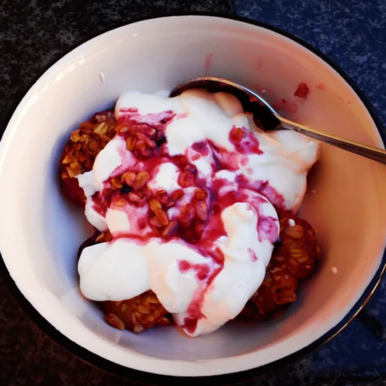 I know this doesn’t look like a cupcake all gloriously puffed and pretty but it is…a cupcake with lots of fruit and the crunch of …